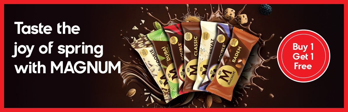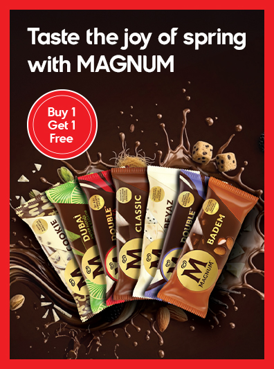 When purchasing 2 Magnum ice creams, the lower-priced item will be free; the discount will be applied at checkout. For your health, consume 4–5 portions of fruits and vegetables daily. The campaign is subject to stock availability.