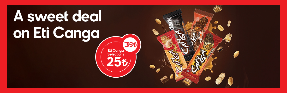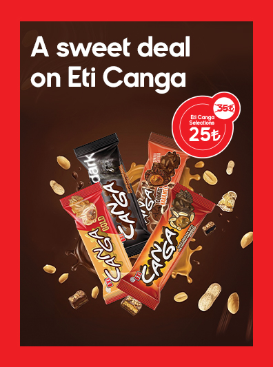 The offer applies to Eti Canga Milk, Dark, Cookie, and Gold varieties; it is not valid for the Canga Pistachio product. The discounted price will be applied at checkout. For your health, consume 4–5 portions of fruits and vegetables daily.