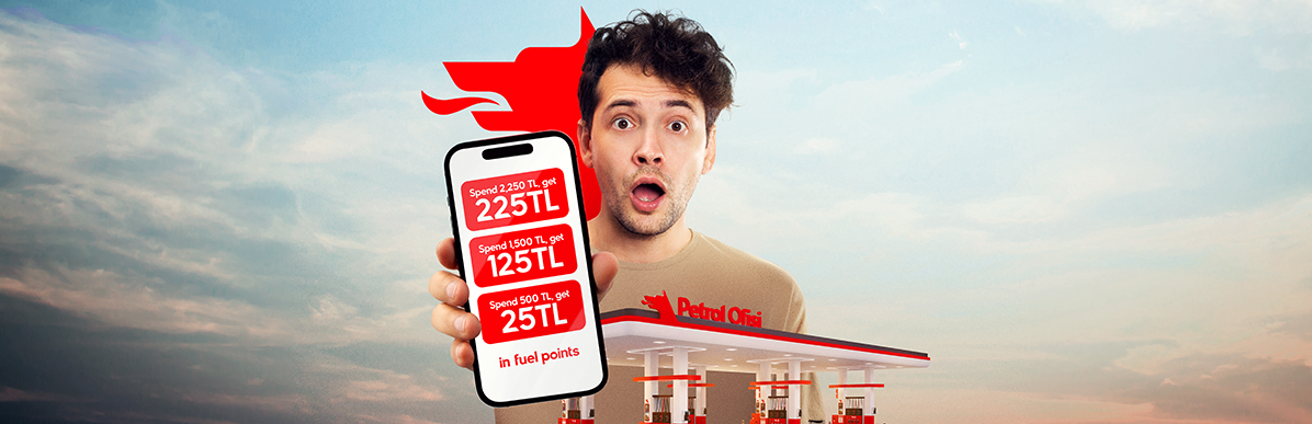 Register with the Petrol Ofisi mobile application between June 02 – July 20, 2025, earn instant gift fuel up to 225 TL at once and up to 900 TLin total. All you need to do is join campaign and purchase fuel via your license plate or your Positive Card registered in the mobile app from our Petrol Ofisi and BP fuel stations that are part of Positive Card-member stations. Within the scope of the campaign, you must participate by choosing one of the fuel gift campaigns worth 25 TL for your fuel purchase of 500 TL and above in one go, 125 TL for your fuel purchase of 1500 TL and above, or 225 TL for your fuel purchase of 2250 TL and above.
