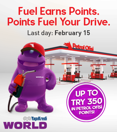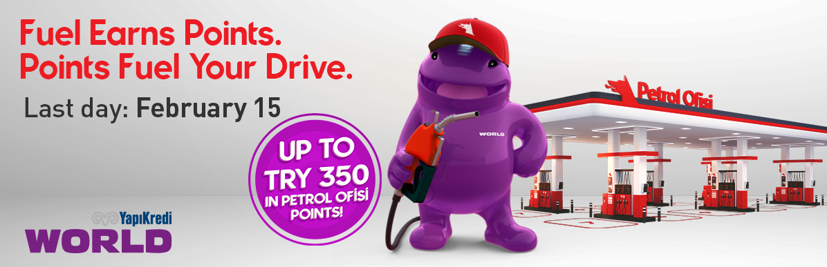 Get up to 350 TRY Yapı Kredi Petrol Ofisi Points for making 4 fuel or autogas purchases of TRY 1,000 or above on different days at World member Petrol Ofisi stations with your Yapı Kredi credit card.Click.