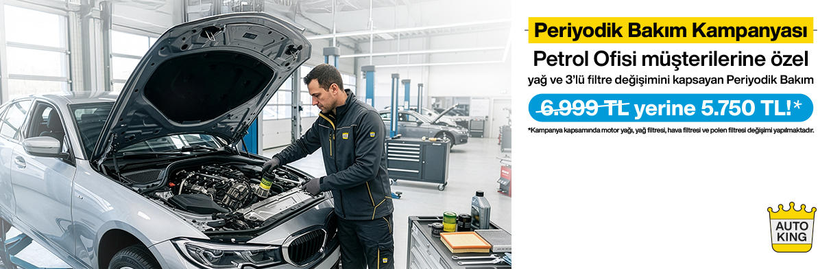 Kampanya 01.04.2026-30.06.2026 tarihleri arasında geçerlidir. Kampanya kapsamında, motor yağı, yağ filtresi, hava filtresi ve polen filtresi değişimi yapılmaktadır. Kampanyalı fiyat 5 litre yağ kullanımını kapsamaktadır. 5 litre üzeri yağ kullanımında fark servis merkezi tarafından yansıtılacaktır. Petrol Ofisi uygulaması üzerinden kampanya kodu alındıktan sonra 0850 333 54 64 numaralı Auto King çağrı merkezi üzerinden randevu alınarak ya da Auto King Oto Servis merkezlerinde kod paylaşılarak kampanyaya katılım sağlanabilir. Kampanya, Auto King ve Petrol Ofisi’ne ait diğer kampanyalar ile birleştirilemez ve devredilemez. Kampanya kodları tek kullanımlıktır, tek bir işlem için geçerlidir ve başka kişilerle paylaşılamaz. Auto King ve Petrol Ofisi A.Ş. kampanya koşullarında değişiklik yapma ve kampanyayı durdurma hakkını saklı tutar.