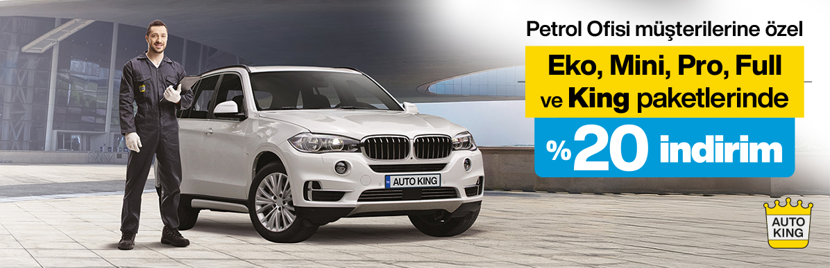 Petrol Ofisi müşterilerine özel Auto King Oto Ekspertiz merkezlerindeki Eko Paket, Mini Paket, Pro Paket, Full Paket ve King Paket ekspertiz paketlerinde %20 indirim sağlanacaktır!