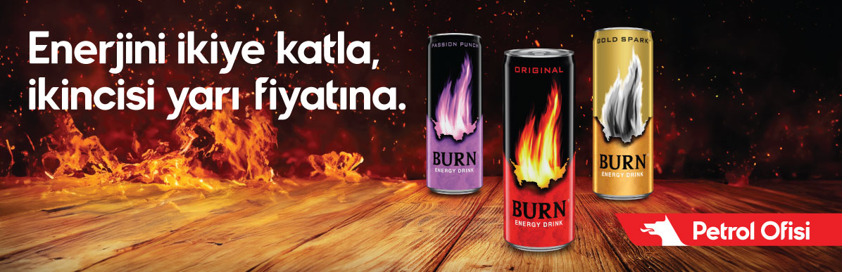 Herhangi bir Burn 250 ml çeşitlerinden birinin alımında ikinci Burn 250 ml ürün çeşitlerinden biri ücretsiz.