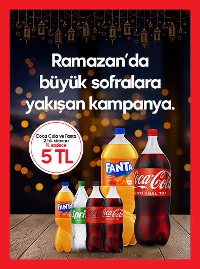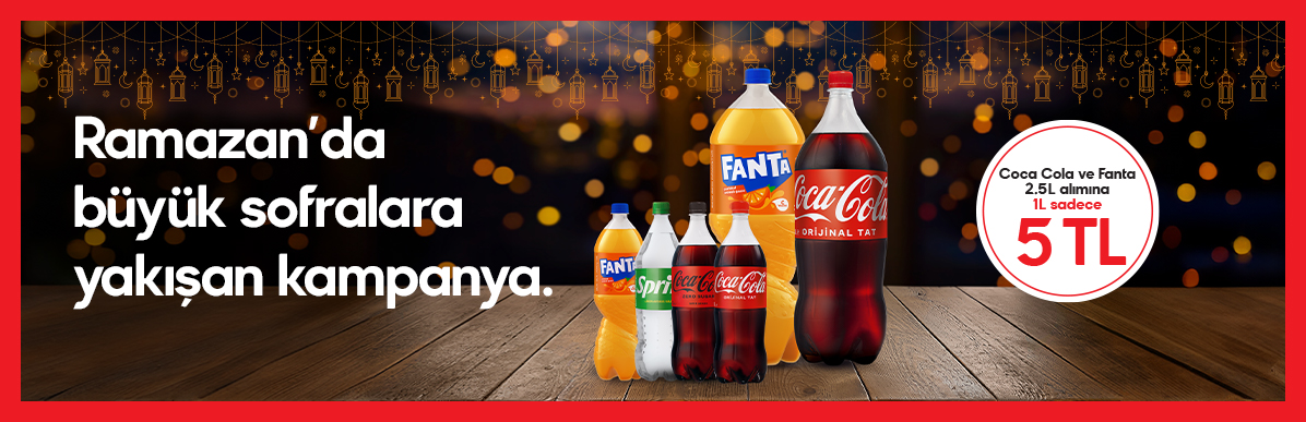 Coca Cola veya Fanta 2,5 L içecek alana Coca Cola, Fanta veya Sprite 1 L çeşitlerinden biri 5 TL olacaktır. Ürünün indirimli fiyatı kasada yansıyacaktır. Sağlığınız için günde 4-5 porsiyon sebze-meyve tüketiniz.