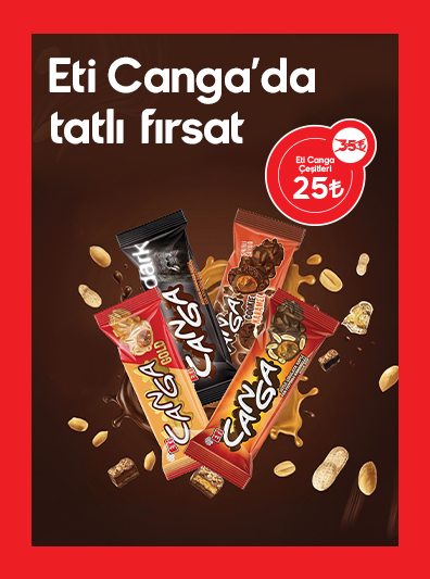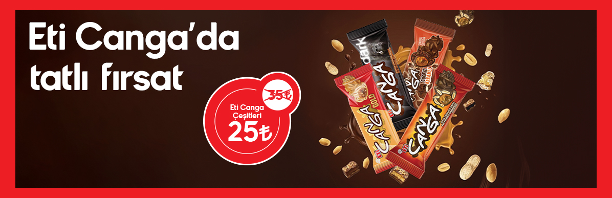 Eti Canga Sütlü, Bitter, Cookie ve Gold çeşitlerinde geçerlidir, Canga Antep fıstıklı ürününde geçerli değildir. Ürünün indirimli fiyatı kasada yansıyacaktır. Sağlığınız için günde 4-5 porsiyon sebze-meyve tüketiniz.