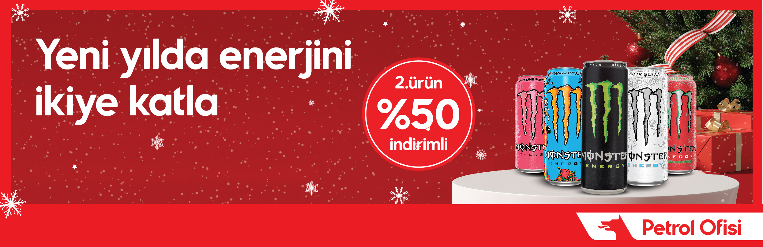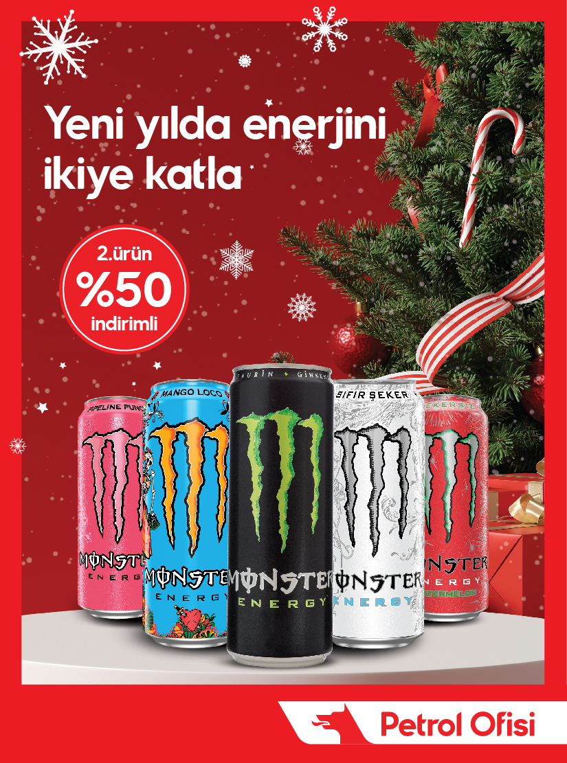 Herhangi bir Monster 500 ml çeşitlerinden birinin alımında ikinci Monster 500 ml ürün çeşitlerinden biri %50 indirimli olacaktır. Kampanya stoklarla sınırlıdır. Sağlığınız için günde 4-5 porsiyon sebze ve meyve tüketiniz.