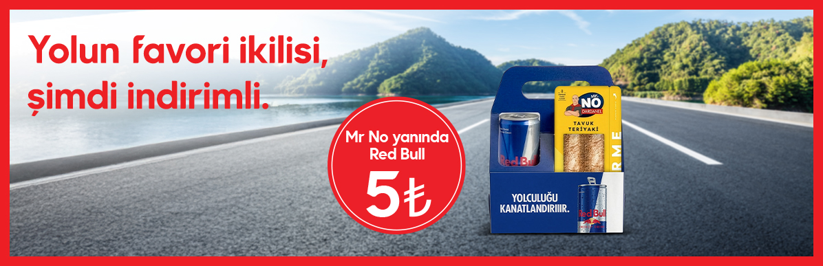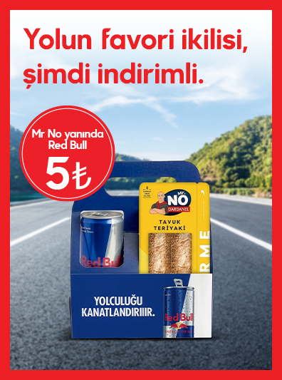 Mr No üçgen sandviç çeşitlerinden birini alana Redbull 250 ml çeşitlerinden biri 5 TL olacaktır. Kampanya stoklarla sınırlıdır. Sağlığınız için günde 4-5 porsiyon sebze ve meyve tüketiniz.
