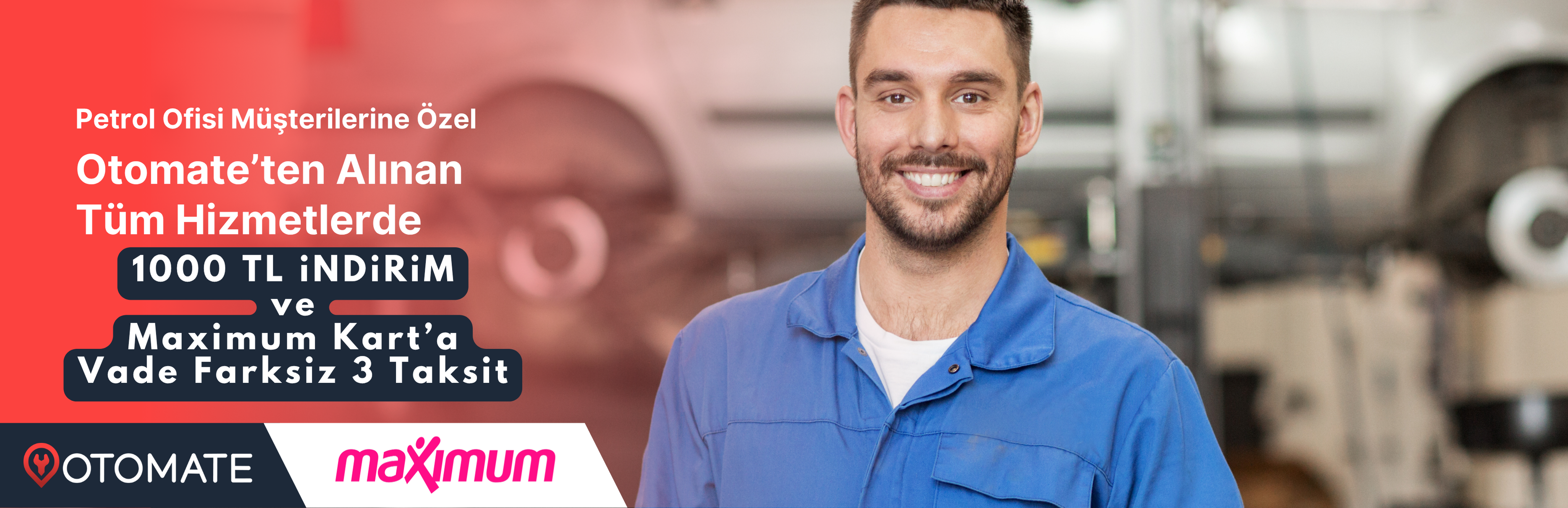 Petrol Ofisi müşterilerine özel Otomate'te tüm hizmetlerde geçerli 5000 TL üzeri harcamalara 1000 TL indirim ve Maximum Kart ile vadesiz 3 ay taksit uygulanacaktır!