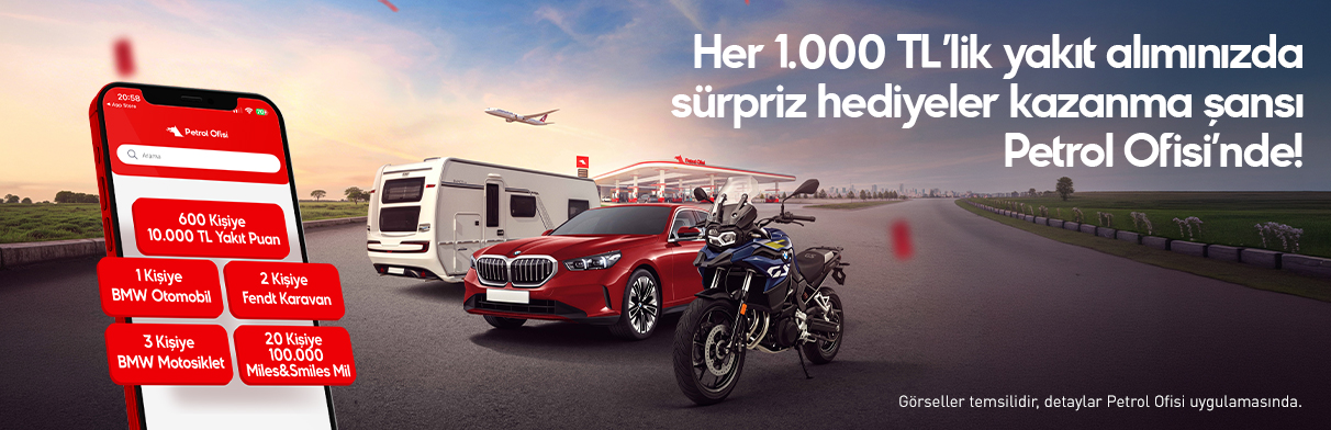 Bu Kampanya Petrol Ofisi A.Ş. tarafından Milli Piyango İdaresi’nin 16.03.2026 tarihli ve E-58259698-255.01.02-87636 sayılı izni ile düzenlenmektedir. 01.04.2026 (00:00) – 15.05.2026 (23:59) tarihleri arasında Türkiye genelindeki Positive Card Sadakat Programı üyeleri tüm Petrol Ofisi ve BP akaryakıt istasyonlarından tek seferde 1.000 TL ve katları tutarında (her 1.000 TL’lik akaryakıt ve otogaz LPG alımı için 1 çekiliş hakkı) akaryakıt ve otogaz alışverişi yapan bireysel müşterilerden, Petrol Ofisi mobil uygulamasına üyelik bilgileri ile giriş yaptıktan sonra, kampanyalar sayfasından Çekiliş Kampanyasını seçip, adres bilgilerini girerek çekilişe katılım onayı verenlere çekiliş hakkı verilecektir. Kampanya katılım onayının kampanya boyunca bir kez verilmesi yeterlidir. Ad, soyad, adres ve telefon bilgileri eksik veya kayıtlı olmayan Petrol Ofisi üyesi müşterilere çekiliş hakkı verilmeyecektir. Katılımda sunulan tüm bilgilerin doğruluğu ve yeterliliğinin ispatı katılımcının sorumluluğundadır. Kampanyaya başarılı katılım yapılabilmesi için Petrol Ofisi mobil uygulamasından kampanya onayı verilmesi zorunludur. Kampanya katılım onayının kampanya boyunca bir kez verilmesi yeterlidir. Kampanya bireysel Positive Card sahibi Petrol Ofisi üyesi müşterilere yöneliktir. Kampanya Bireysel Petrol Ofisi Mobil uygulama üyesi müşterilere yöneliktir.Çekilişte 1 kişi BMW 520i Sedan Edition M Sport 2026 Model Otomobil (birim değeri: 8.816.000,00 TL), 2 kişi Bianco Activ 560 SKM Çekme Karavan (birim değeri: 2.500.000,00 TL), 3 kişi BMW F 800 GS 2026 Model Motosiklet (birim değeri: 1.006.246,37 TL), 600 kişi, kişi başı 10.000 TL değerinde Petrol Ofisi Akaryakıt Çeki ve 20 kişi ise 100.000 Türk Hava Yolları Mili (birim değeri: 4.371,00 TL) ikramiyesi kazanacaktır. Söz konusu 100.000 Türk Hava Yolları Mili ikramiyesinin son kullanım tarihi 31.03.2027’dir. Uçuş milleri turkishairlines.com internet sitesi üzerinden ödül uçak bileti alımında ve Shop&Miles üzerinden yapılacak alışverişlerde kullanılabilir. 10.000 TL değerinde Petrol Ofisi Akaryakıt Çekleri ise, 31.03.2027 tarihine kadar Petrol Ofisi’nin dağıtıcı lisansları altında faaliyette bulunan akaryakıt ve otogaz LPG akaryakıt istasyonlarından yapılacak akaryakıt/otogaz LPG alımlarında geçerli olacaktır. Yakıt puan çekleri talihlilerin Petrol Ofisi üyeliklerine tanımlanacaktır. Kazanılan miller ve akaryakıt hediye çekleri talihliden başkası tarafından kullanılamaz, devredilemez, nakde çevrilemez. Çekiliş 9.06.2026 tarihinde saat 11.00’da U2 Tanıtım ve Promosyon Hizmetleri Tic. Ltd. Şti. (U2 Tanıtım) Sütlüce Mah. Bayrak Sok. No:4-A Beyoğlu-İstanbul adresinde, noter huzurunda ve isteyen herkesin katılımına açık olarak gerçekleştirilecektir. Kazanan talihliler 15.06.2026 tarihinde Takvim Gazetesi Türkiye Baskısı’nda duyurulacaktır. Asil ve yedek talihlilere taahhütlü posta yolu ile tebligat yapılacaktır. Postada meydana gelecek gecikmelerden Petrol Ofisi A.Ş. ve U2 Tanıtım sorumlu değildir. Katılımcının ikramiye kazanması durumunda, adres bilgileri eksik veya bilinmiyor ise gazetede yapılan ilan tebliğ için yeterlidir. Asil talihliler 30.06.2026, yedek talihliler 15.07.2026 tarihine kadar kimlikleri ve iletişim bilgileri ile info@u2.com.tr mail adresine, 0212 217 41 21 nolu faksa ya da U2 Tanıtım’ın yukarıda belirtilen adresine şahsen başvurmaları ve istenilen belgeleri eksiksiz teslim etmeleri halinde ikramiyelerini almaya hak kazanacaklardır. Bu tarihlere kadar başvuru yapmayan talihliler ikramiyelerini alamazlar. Bir kişi birden fazla ikramiye kazanamaz. Türkiye’de ikamet eden yabancı uyruklu kişilerin tescile bağlı ikramiye kazanmaları durumda ikramiye tesliminde ikametgah tezkeresi ibrazı zorunludur. Bu kampanyaya Petrol Ofisi A.Ş., Petrol Ofisi A.Ş. taşeron firmaları ve U2 Tanıtım ve Promosyon Hizmetleri Tic. Ltd. Şti. çalışanları ile 18 yaşından küçükler katılamaz. Katılmış ve kazanmış olsalar bile ikramiyeleri verilmez. Kazanılan hak devredilemez ve nakde çevrilemez. KDV ve ÖTV dışında ikramiye ile ilgili tüm vergiler ve yasal yükümlülükler talihlilere aittir. Bu çekilişe katılan herkes, yukarıdaki şartları kabul etmiş sayılır.