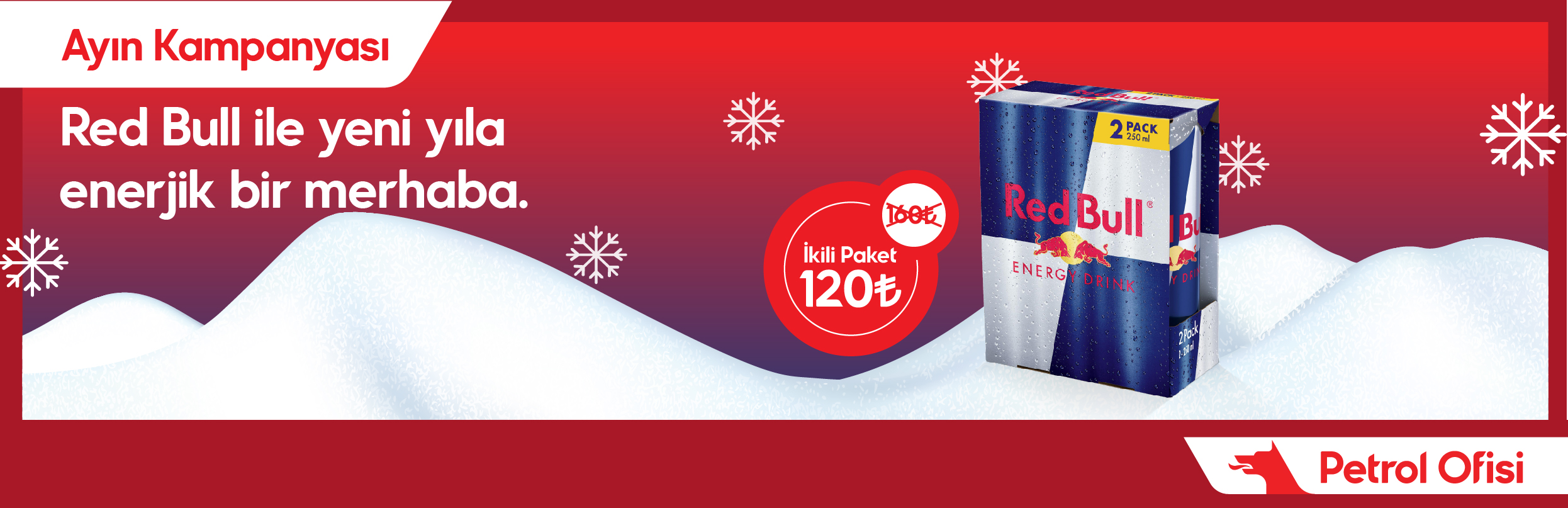 Kampanya 1-31 Ocak 2026 tarihleri arasında seçili istasyonlarda geçerli olacaktır. Redbull 2’li paket ürünü 160 TL yerine 120 TL olacaktır. Tekli Redbull 250 ml ürününde herhangi bir kampanya uygulanmayacaktır. Kampanya stoklarla sınırlıdır.